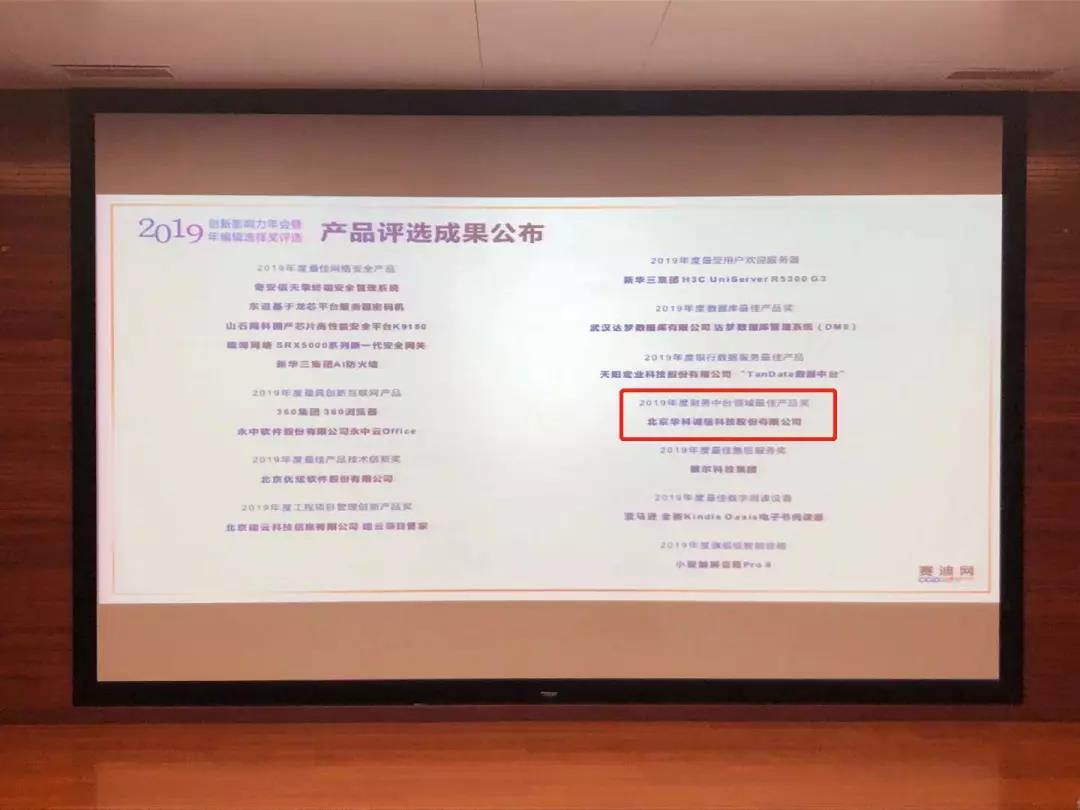 2020年1月7日,由赛迪网联手《互联网经济》共同推出的年度活动---“2019年编辑选择奖评选”顺利举行,会上,重磅发布了各项2019创新影响力推优成果。我司“财务中台”荣获领域最佳产品奖。