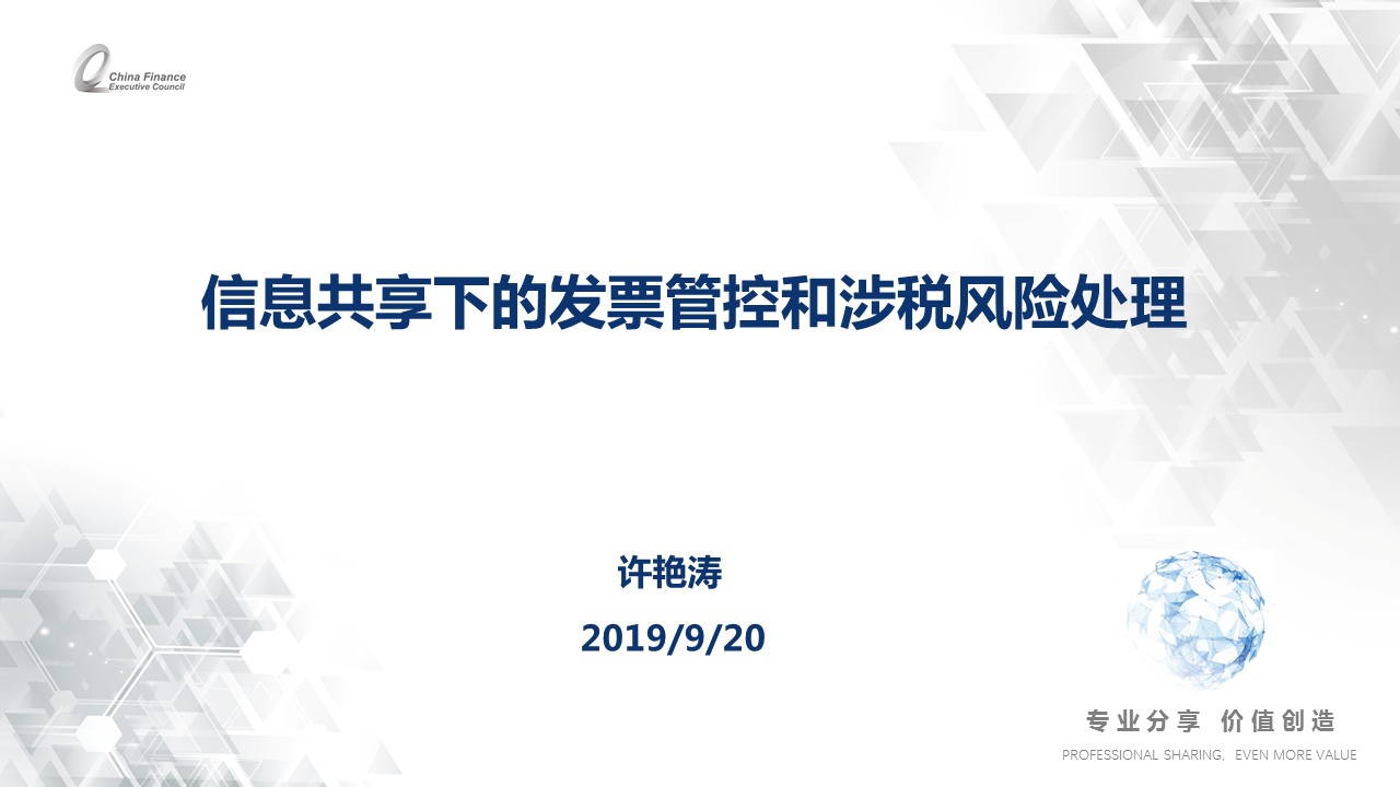 以下为华科诚信受邀出席"多维应对减税降费新局面--2019第十四届企业财税管理创新大会"(由F-Council协同共享企业服务(上海)股份有限公司发起组织)时所做的演讲内容,特此做回顾与分享。