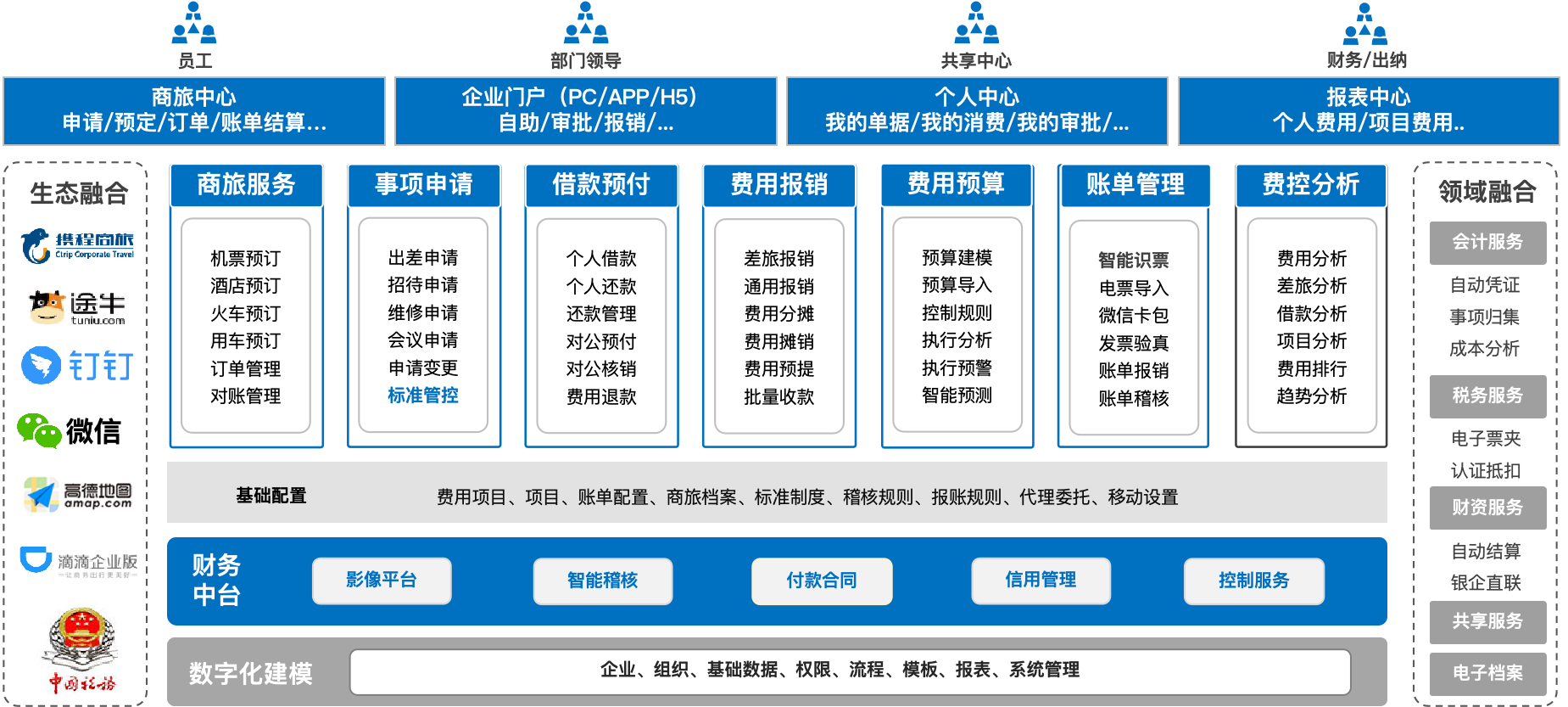 提供给企业先进的对私报销、对公支付和商旅管理解决方案,通过智能费控服务系统,实现企业费用的精细化管理。致力于加速费用报销的处理效率,简化相关流程,通过智能稽核对交易进行审计稽查。从而消除报销人报销及财务人员审核的繁琐任务,让费控工作更简捷,助力企业实现卓越运营。