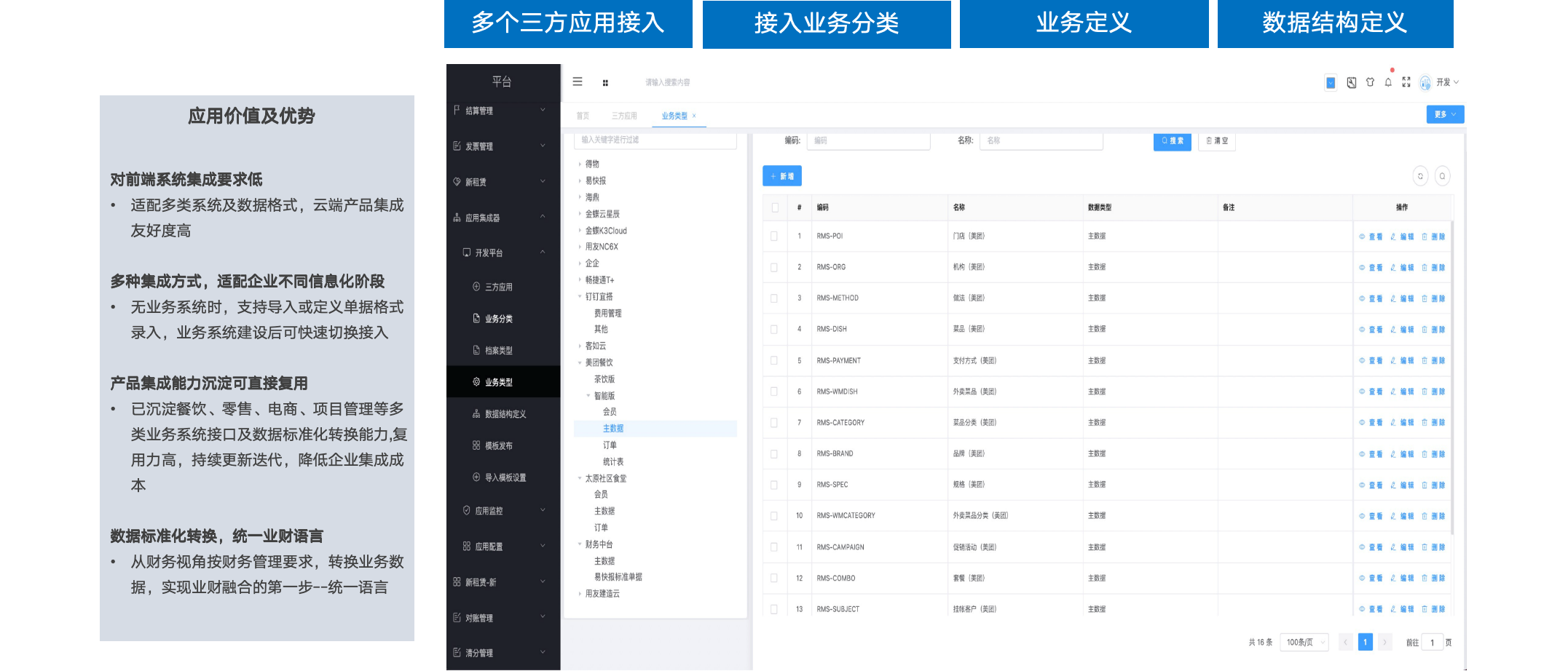 万联云已与50余家厂商进行打通,沉淀餐饮、零售、电商、OA及费控支出等多类业务系统接口及数据标准化转换能力,已经发布企业支出版、餐饮版、电商版、智慧零售版四个成熟版本,为企业系统集成提供低成本、高效率集成解决方案。