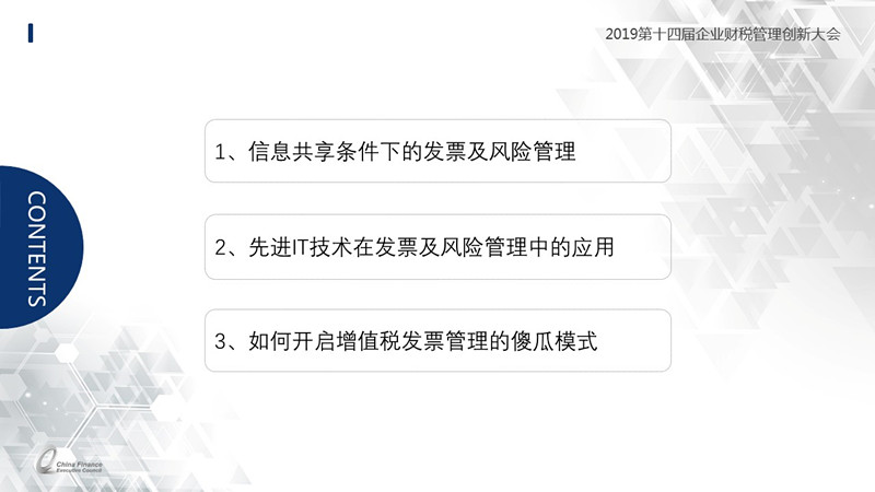 以下为华科诚信受邀出席"多维应对减税降费新局面--2019第十四届企业财税管理创新大会"(由F-Council协同共享企业服务(上海)股份有限公司发起组织)时所做的演讲内容,特此做回顾与分享。