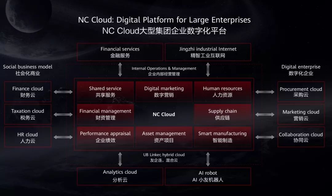 用友聚焦企业服务31年,经过多年服务百万级政企客户的经验,面对当前企业数字化的挑战,“经过多年的研发投入和实践,用友已经形成了较完整的企业云服务架构,涵盖了PaaS、SaaS、BaaS和DaaS的全栈云服务。”李俊毅现场以大型企业数字化平台用友NC Cloud为例介绍指出,“该平台内核部分仍然是企业的人财物客的管理,但是其功能已经发生了翻天覆地的变化,已经从原来的流程驱动变为数字驱动。”