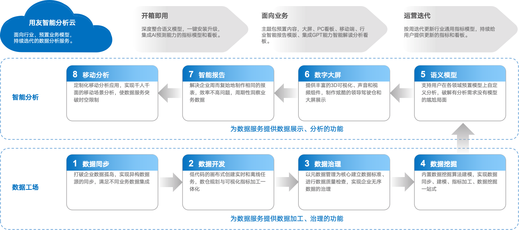 依托用友高端产品线为客户提供司库体系、财务共享、数据中台、集团财务管控、供应链等数字化服务。