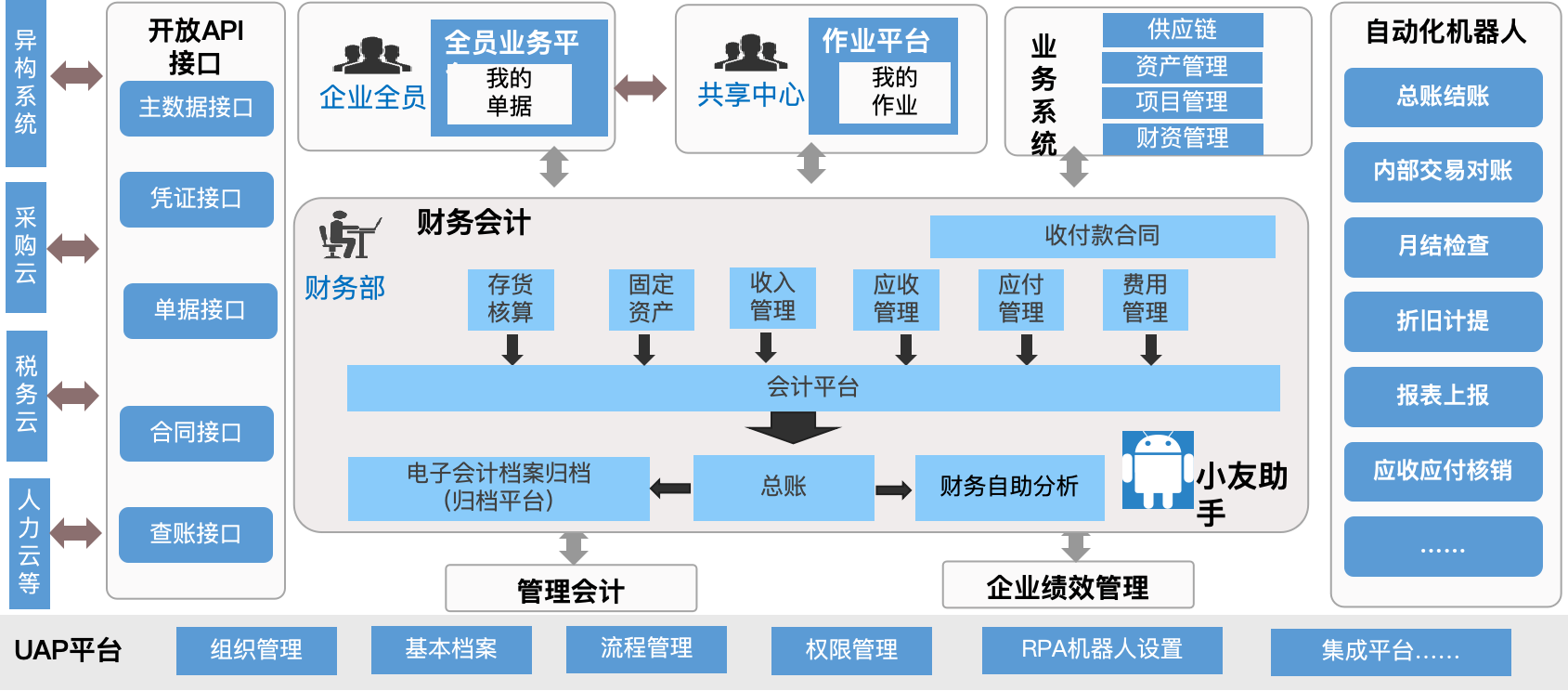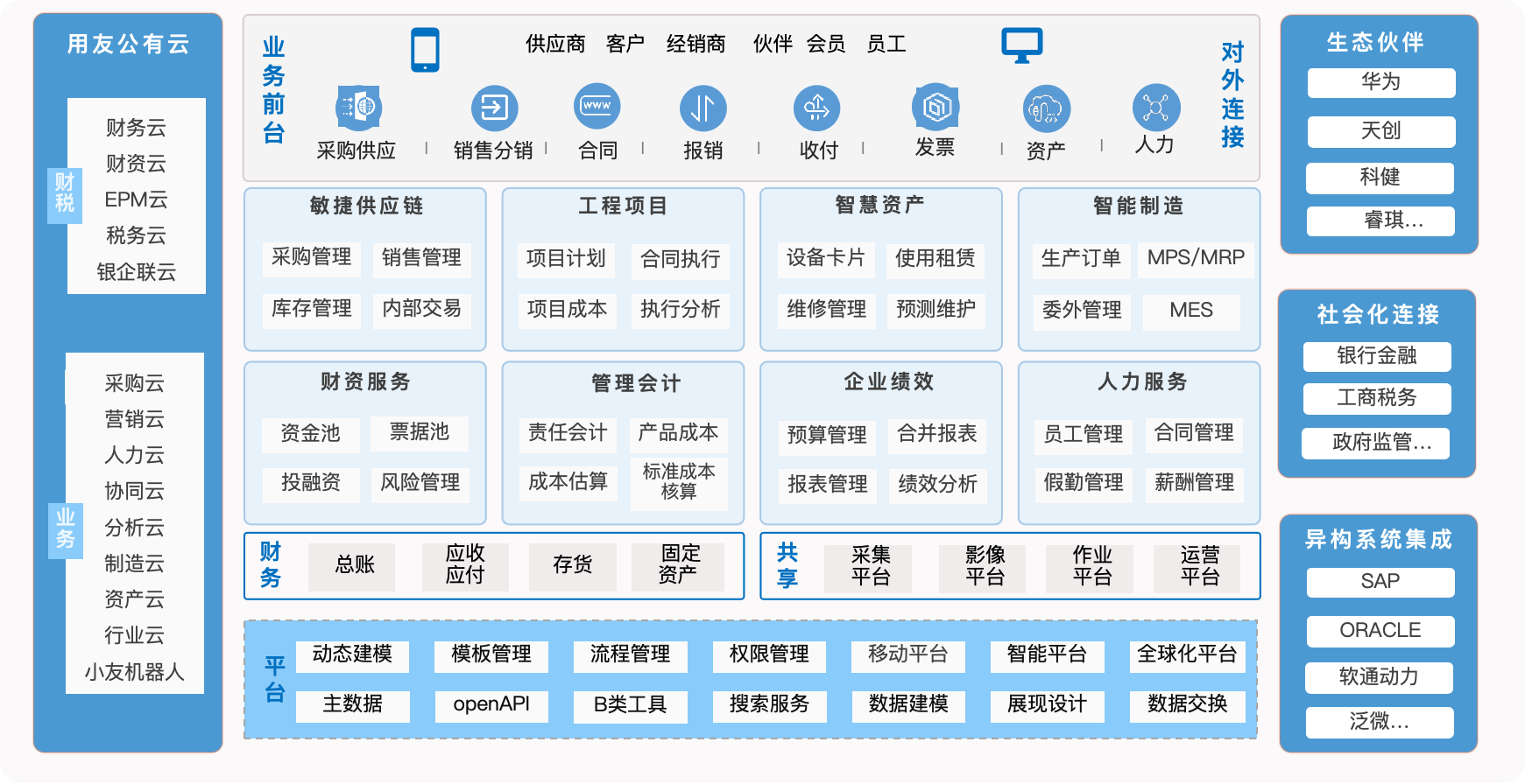 依托用友高端产品线为客户提供司库体系、财务共享、数据中台、集团财务管控、供应链等数字化服务。