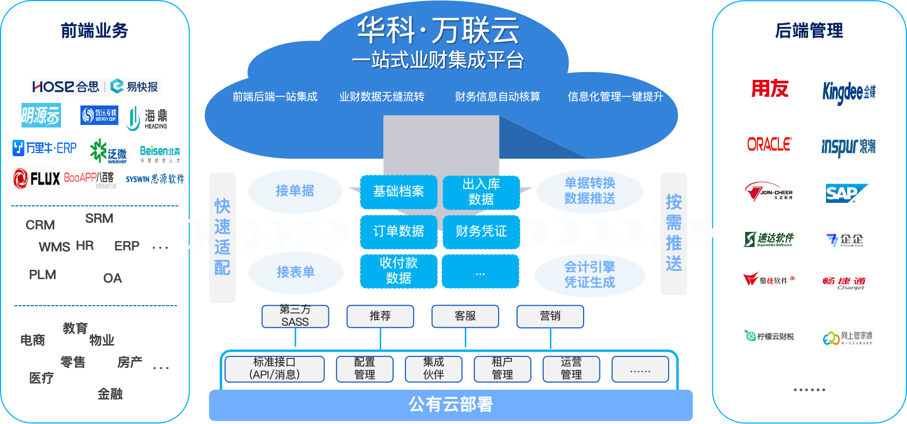 华科诚信万联云基于SAAS化实现快速、高效、低成本的连接,为企业提供更高效、更低成本的业财集成方案(主数据同步、单据集成、财务核算自动化)