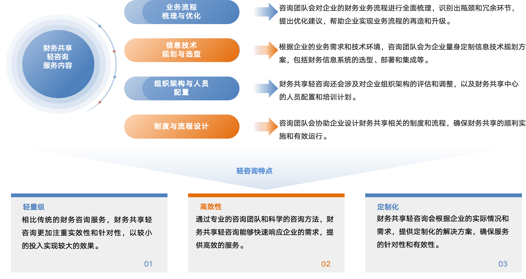 华科诚信针对企业财务共享建设或优化过程中提供专业的轻咨询服务,通过专业咨询方案团队对企业的管理现状、财务状况、业务流程、信息技术环境等进行深入分析,为企业出具轻量级、定制化的财务共享解决方案,提供轻咨询与共享系统落地交付相结合的专业服务。这种服务旨在帮助企业实现财务流程的标准化、自动化和智能化,提高财务管理效率和效果。