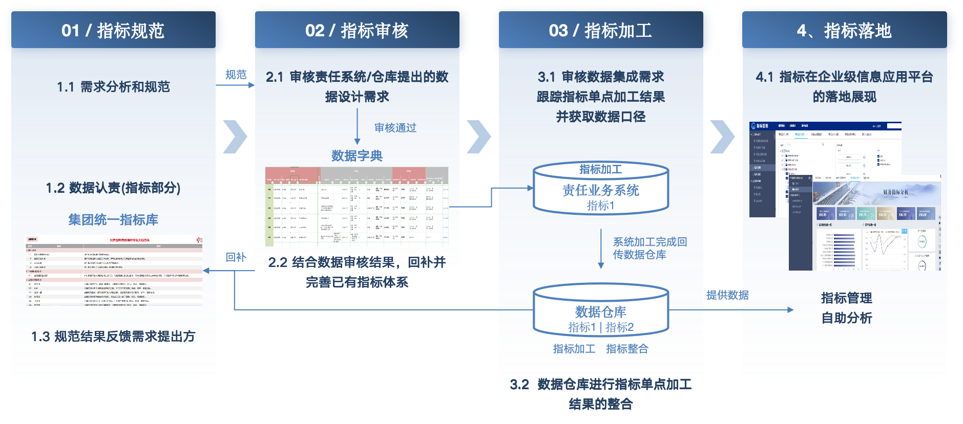 依托于标准的指标数据框架体系方法,通过将指标内容统一规范到固定体系,设计指标维度体系,制定覆盖指标命名、定义、计算口径等的数据标准管理,实现标准的取数、用数及灵活管理及数据内容监控。