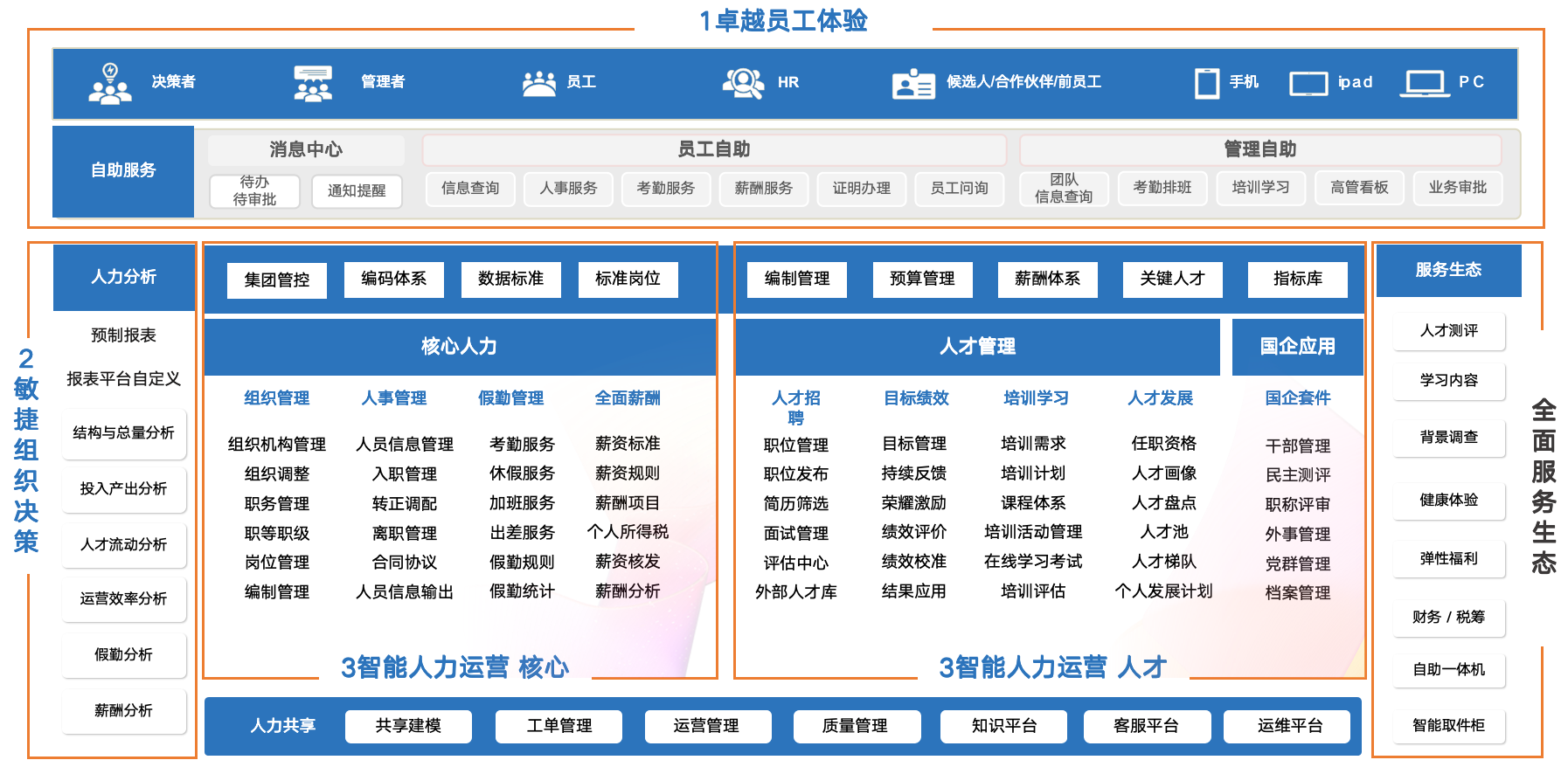 人力资源管理系统可以解决企业对人资信息的集中管理,还能通过严格的权限分配实现差异化控制,使集团真正能做到让合适的人在合适的时间了解和掌握合适的信息,能根据人员的日常办公情况给予计算薪酬、绩效分配、社保计提、人员分析的数据基础。