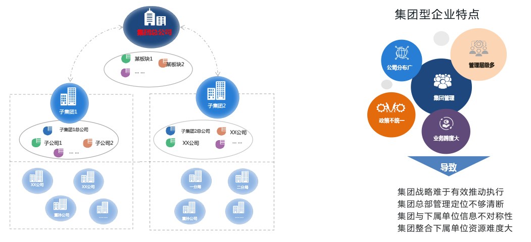 纵向实现集团总部与下属二级企业、三级企业之间的业务联动与信息交互;横向实现各业务板块之间,集团核心产业链之间的业务联动与信息交互,进而促进全集团的发展