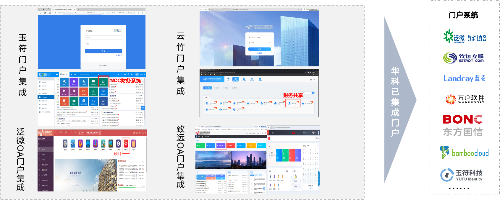 随着企业信息化建设的发展,企业办公与协同软件越来越多,企业员工需要使用不同的账号和密码进行系统的访问,保密性较高的企业还会给不同的系统加设不同的VPN保证安全,不同地址不同用户编码的登录,严重影响了企业员工业务效率,企业通常选择建设门户系统,统一登录入口。 华科具备用友NC、NCC、BIP系统与企业统一门户系统的集成能力,提供调用与统一门户的交互连通服务,提供应用封装跳转到具体应用的集成服务,提供适用企业的门户集成解决方案。
